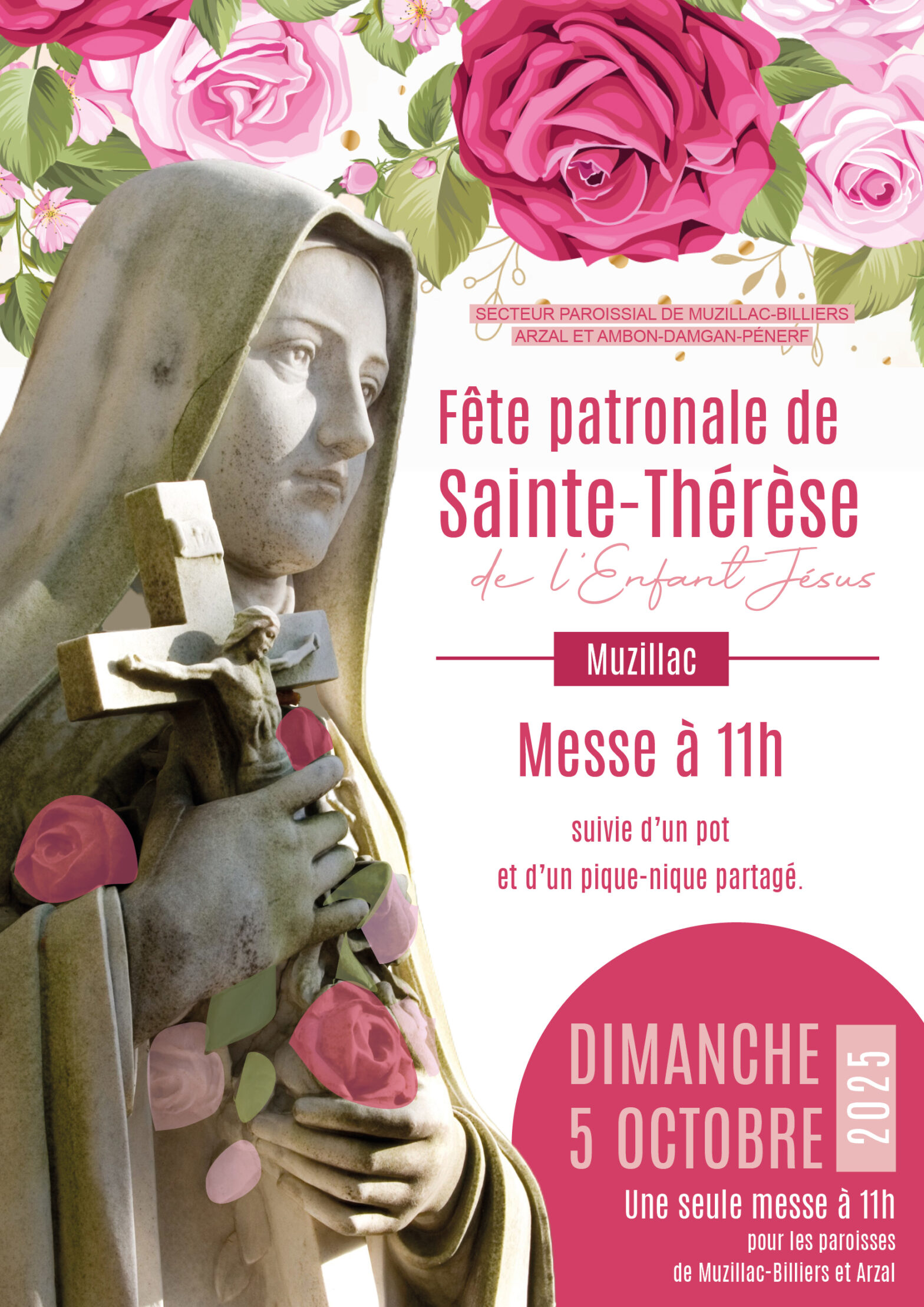 Dimanche 5 octobre 2025 messe à 11h à l’église Sainte-Thérèse à Muzillac suivie d’un pot et d’un pique-nique partagé.