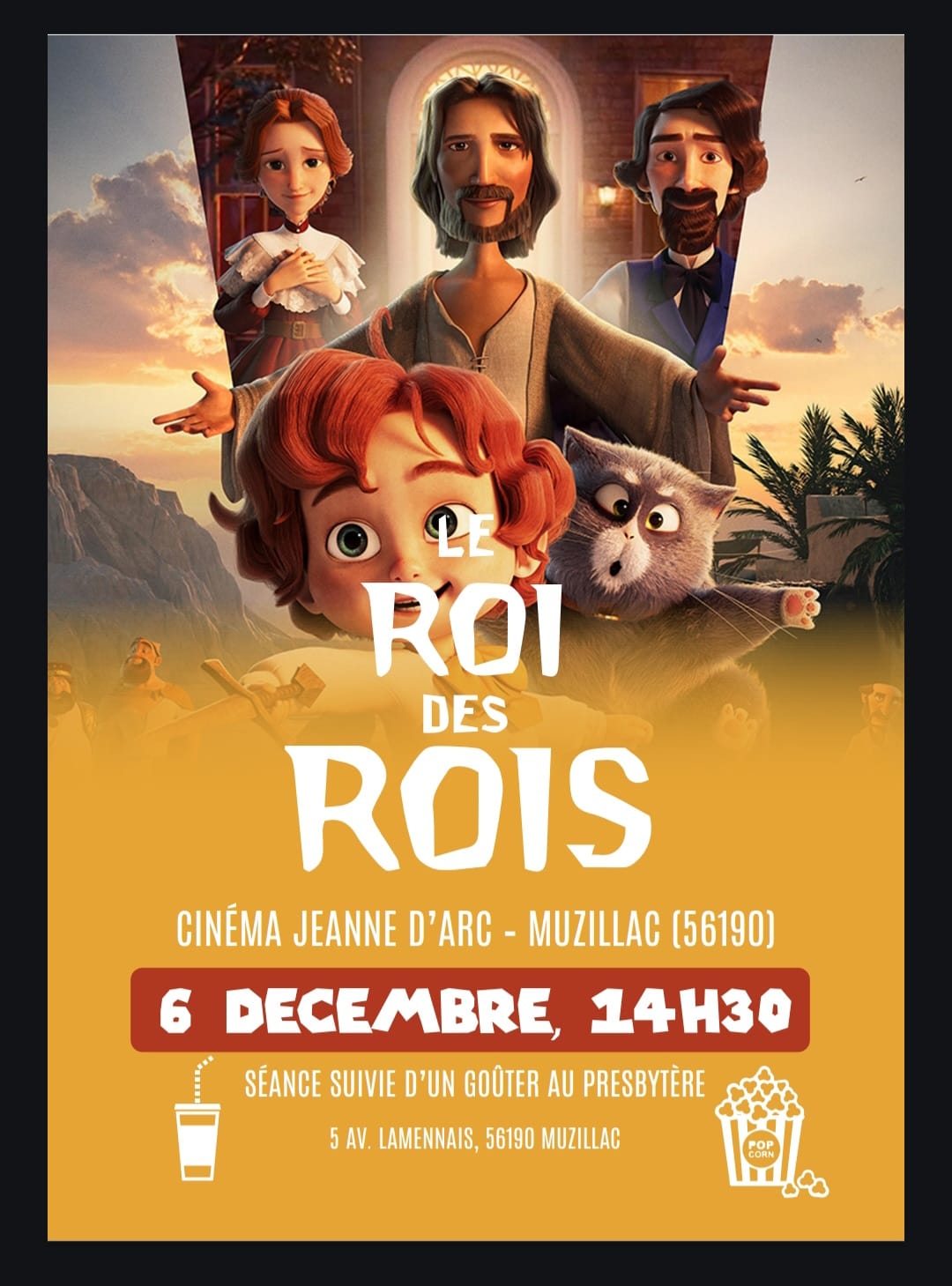 Samedi 6 décembre à 14h30, séance du film “Le Roi des Rois” au cinéma Jeanne d’Arc à Muzillac, suivie d’un goûter au presbytère (5 av Lamennais, 56190 Muzillac).