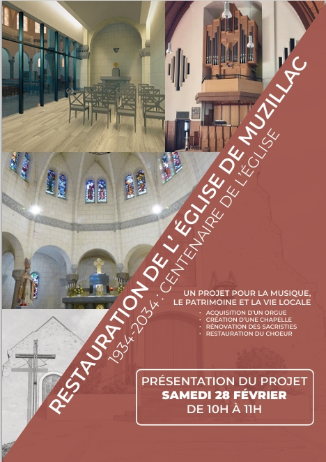 La paroisse de Muzillac propose une présentation publique de l’ensemble du projet Église de Muzillac – Sainte-Thérèse 2034. Un projet au service de la vie liturgique et cultuelle, du rayonnement culturel du patrimoine local :